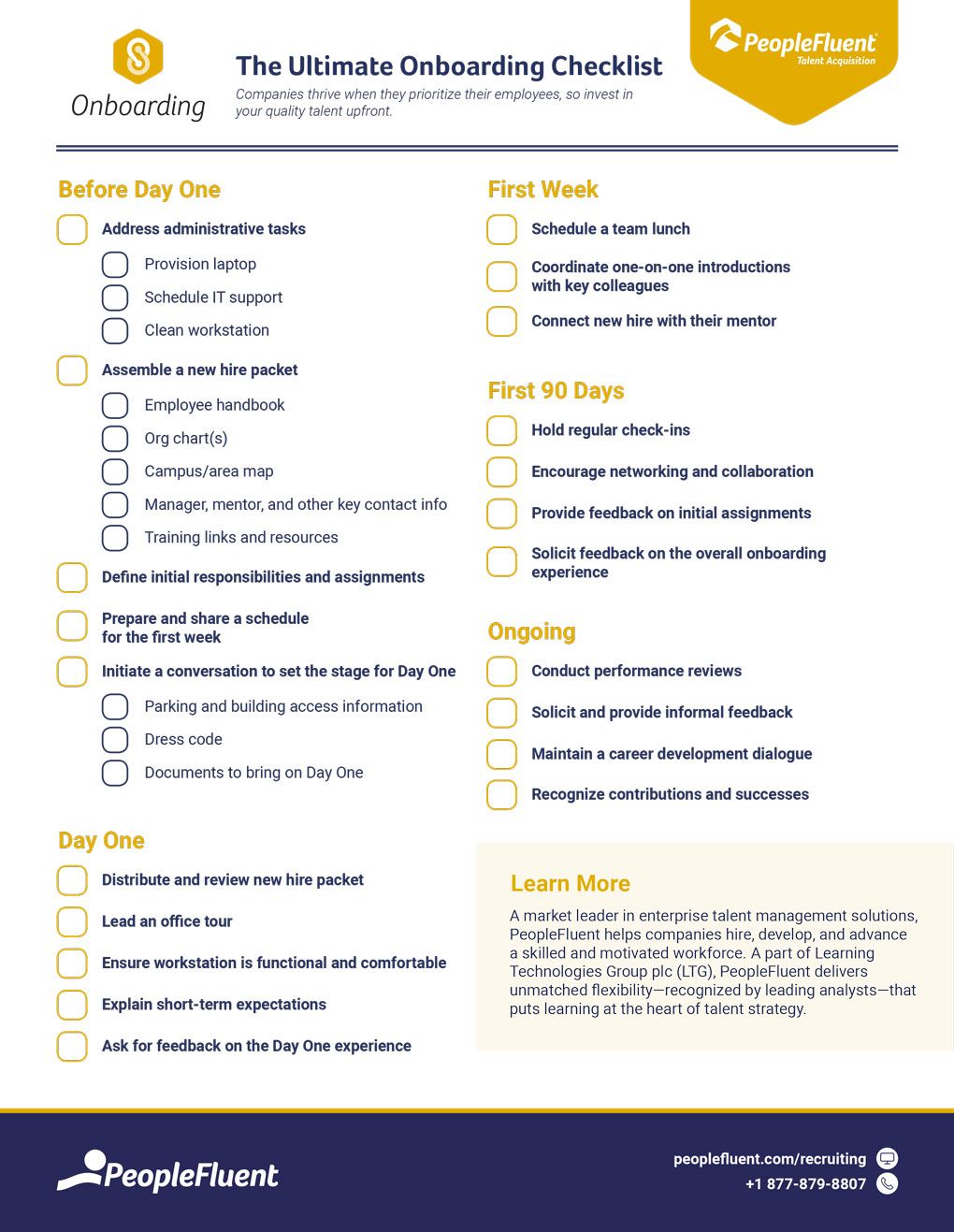With a checklist that puts your new hires center stage and parallels your business goals, your onboarding program will motivate and retain your best talent.